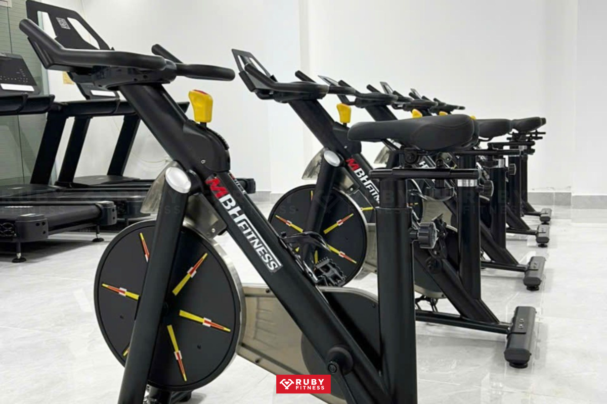- Dòng xe đạp trong nhà của nhãn MBH với kiểu dáng thể thao, tông màu đen là chủ đạo toát lên nét hiện đại là sự lựa chọn hoàn hảo mà Ruby Fitness muốn chia sẻ đến khách hàng cùng tham khảo.