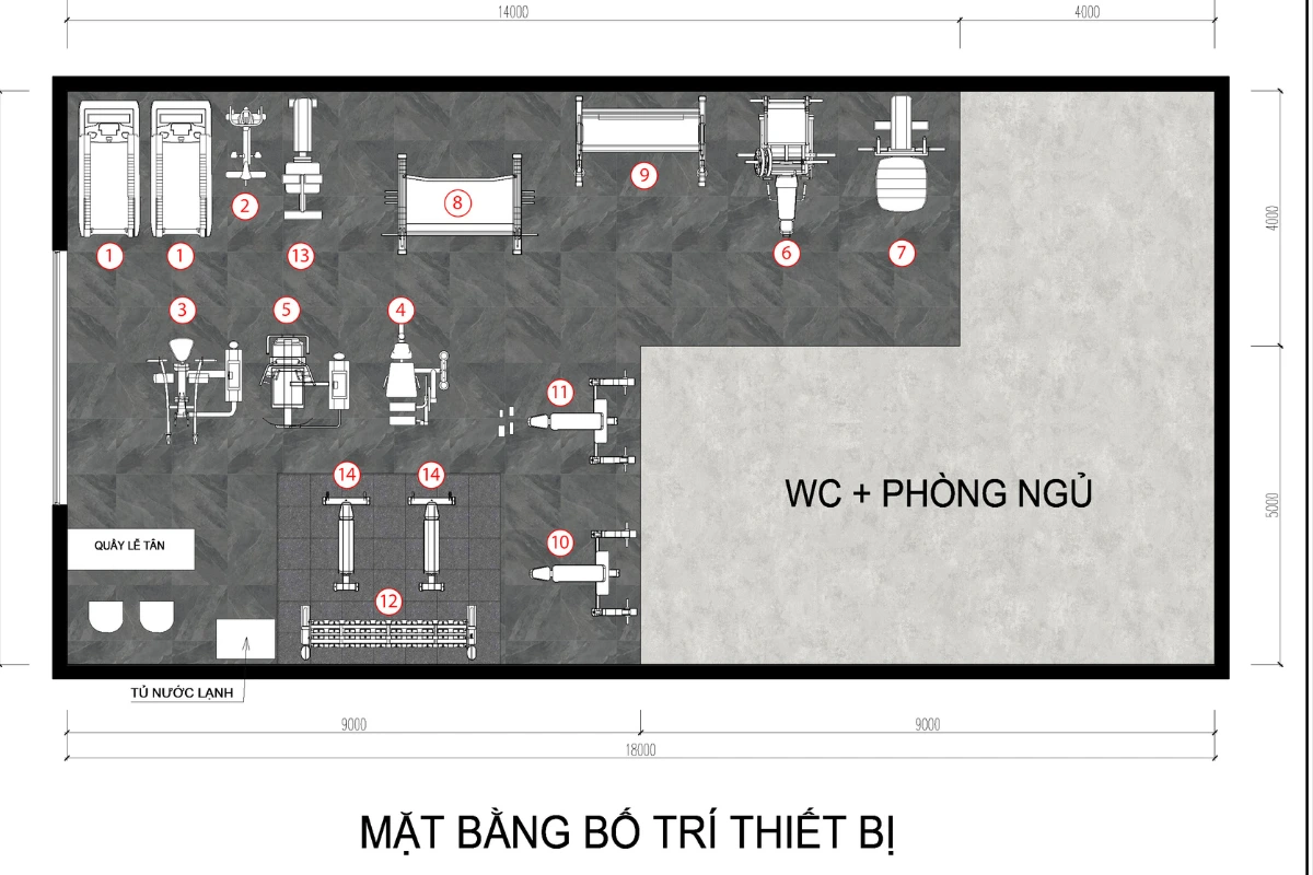3.2. Thiết kế phân khu thiết bị của M&M Fitness